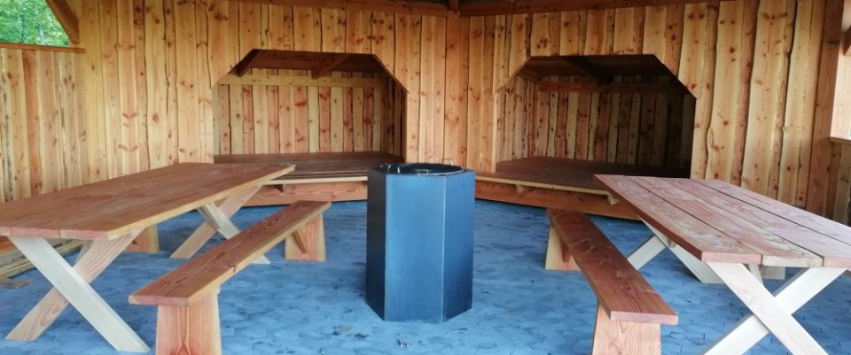 • Borde og løse bænke skal stilles ind i bålhytten, når den forlades